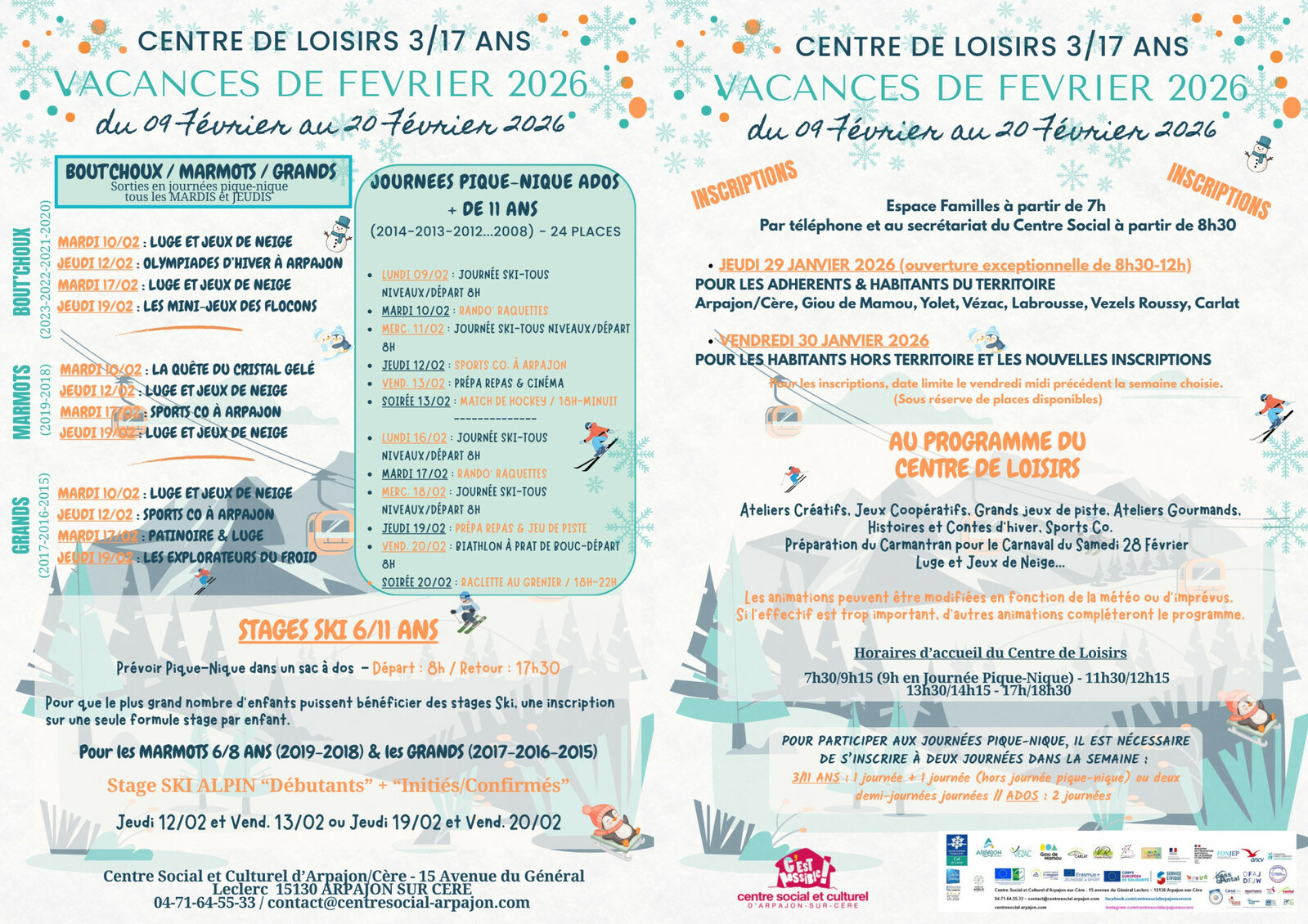 LE PROGRAMME DES VACANCES DE FEVRIER EST ARRIVÉ