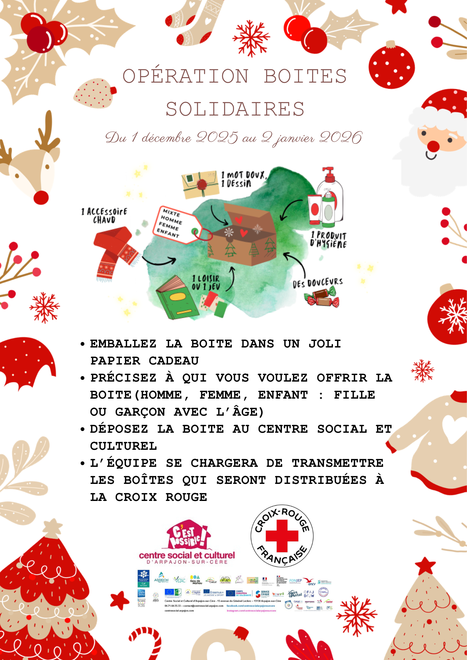 Déposez la boîte au Centre Social et Culturel d'Arpajon-sur-Cère, l'équipe se chargera de transmettre les boîtes qui seront ensuite distribuées par la croix rouge d'Aurillac.