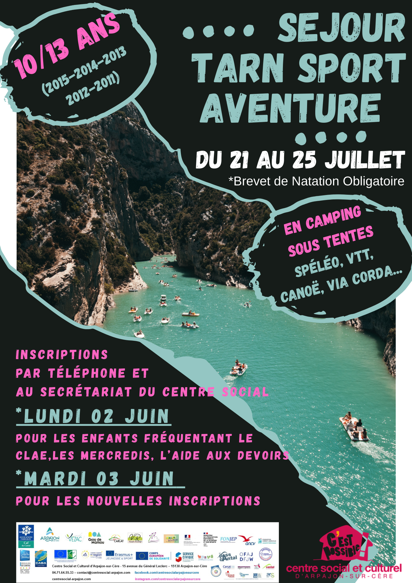 Tarn Sport Aventure 10/13 ans (2015 à 2011) : Du 21 au 25 Juillet 2025 (Brevet de natation obligatoire)