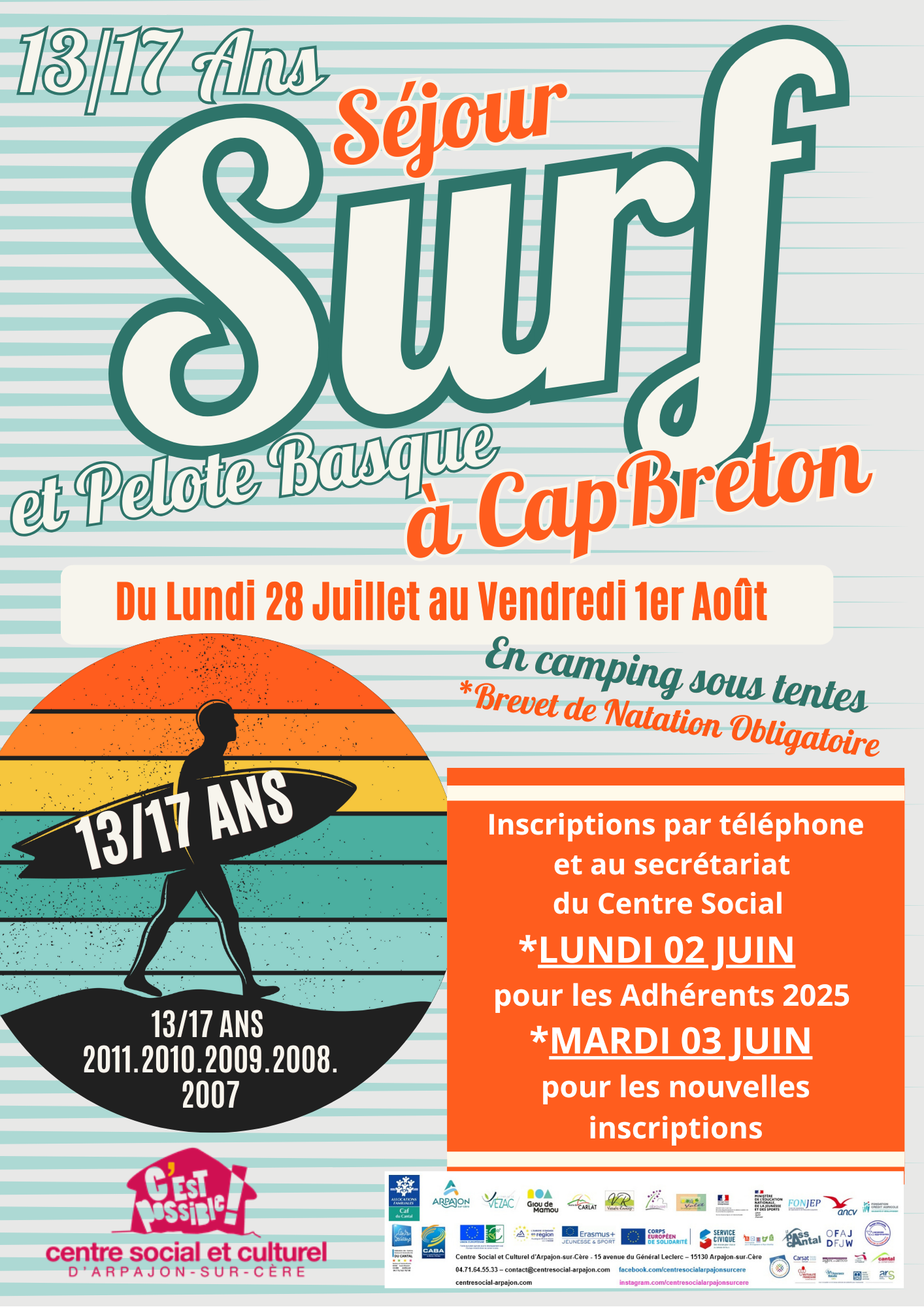 Surf et Pelote Basque à Capbreton 13/17 ans (2011 à 2007) : du 28 Juillet au 1er Août (Brevet de natation obligatoire)