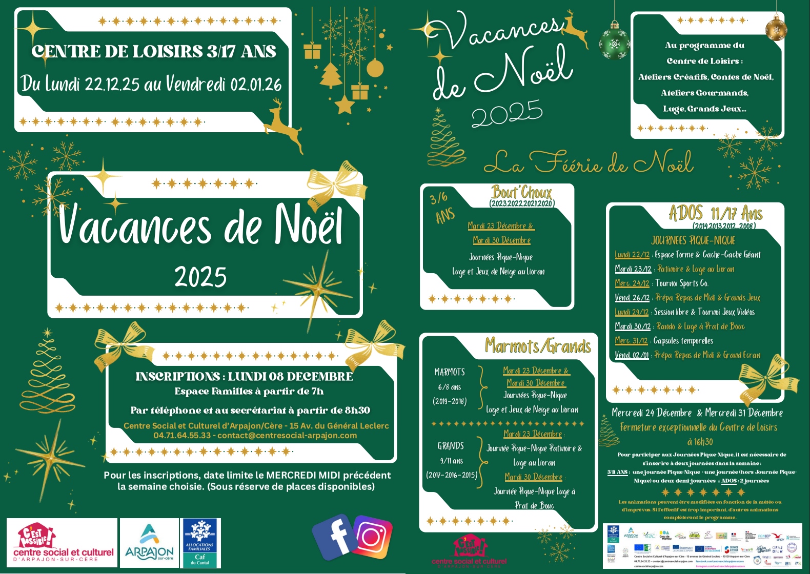 LE PROGRAMME DES VACANCES DE NOËL EST ARRIVÉ