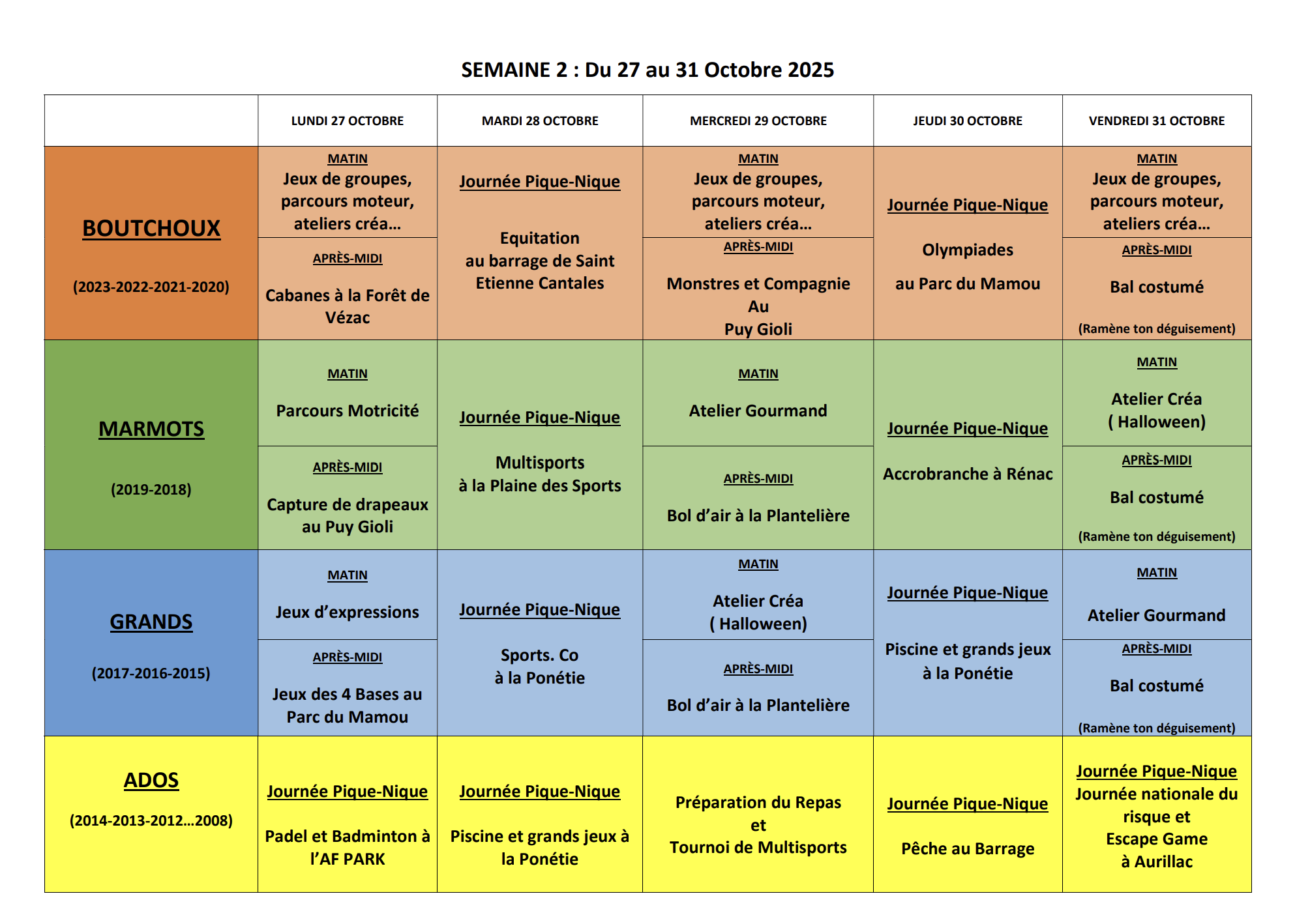 - PROGRAMME DÉTAILLÉ SEMAINE DU 27 AU 31 OCTOBRE (419Ko) publié le 15/10/2025 à 14:36